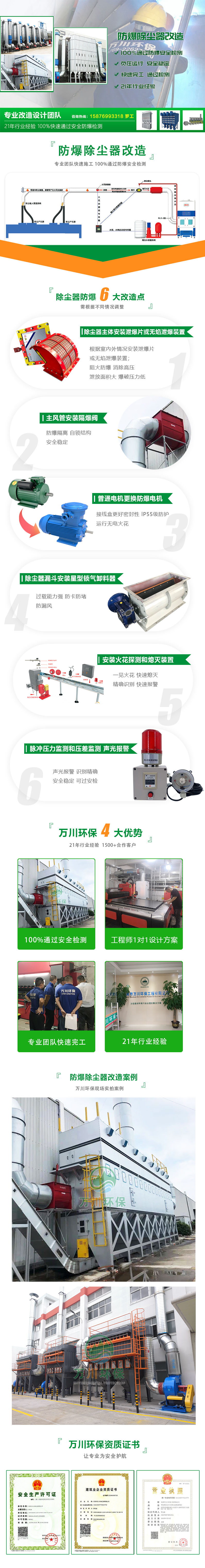 簡介:專為除塵器進行防爆改造,更安全更放心,100%通過安全防爆檢測,6大防爆改造(需根據不同情況調整),快速完工助力企業快速通過安全檢測
