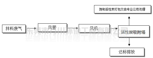 拌料固化產生的屬于揮發性的有機廢氣,通過車間內合理布管,由引風機抽至車間外處理后排放,處理能力為18000m3/h,系統設于車間樓頂。